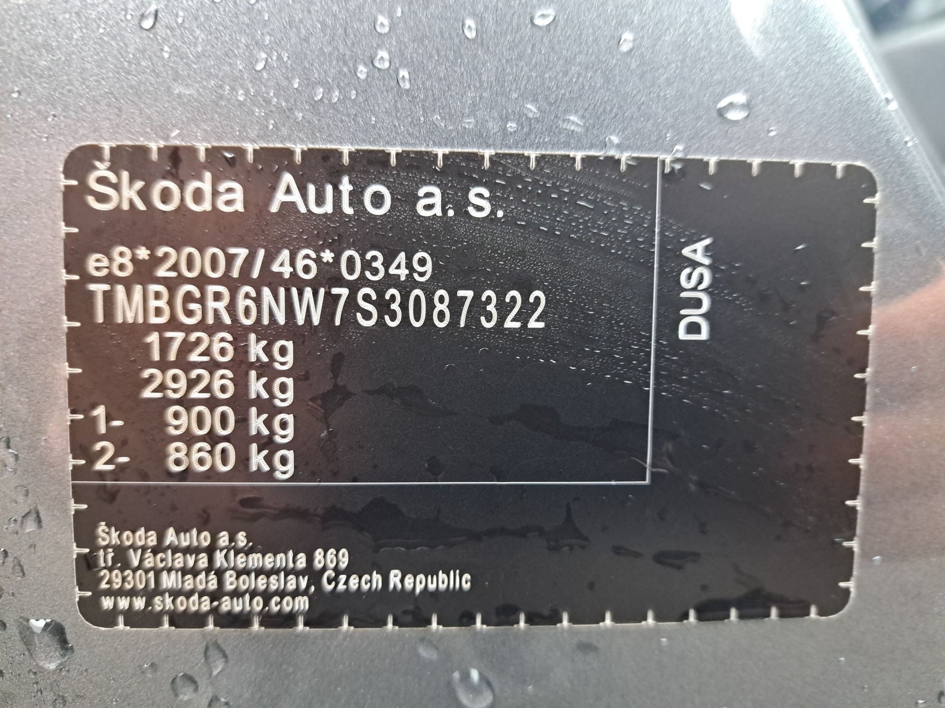 | VIN: | TMBGR6NW7S3087322 |